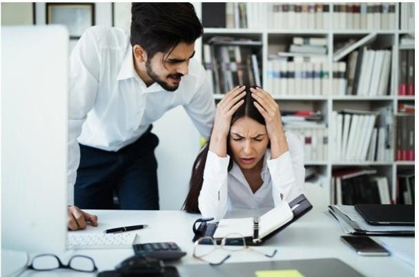 3.Woman is stressed and exhausted. I think, man is trying to help to this woman.