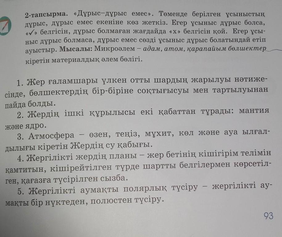 2-тапсырма. Мәтіндегі ақпараттың дұрыстығын тексер.