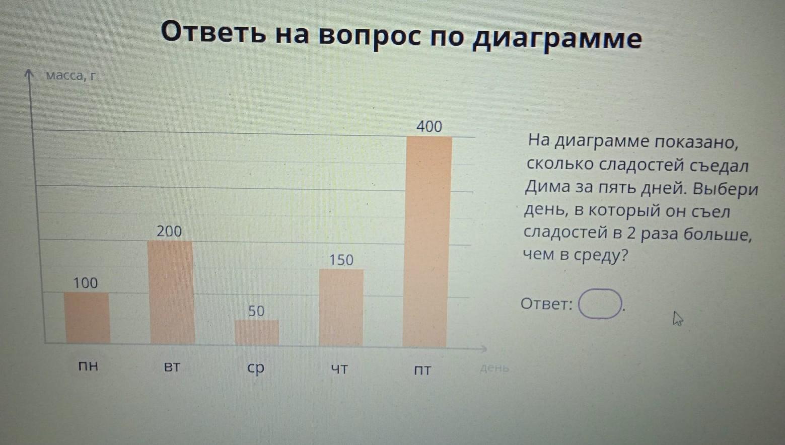 В понедельник Дима съедал в 2 раза больше, чем в среду
