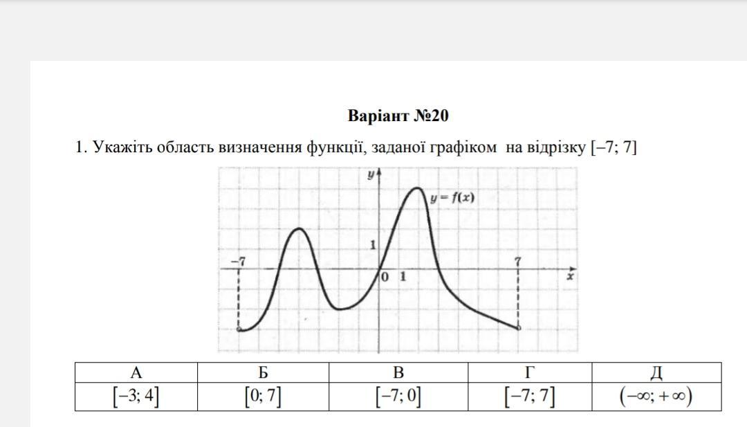 Ответ: Г . [- 7 ; 7 ] .