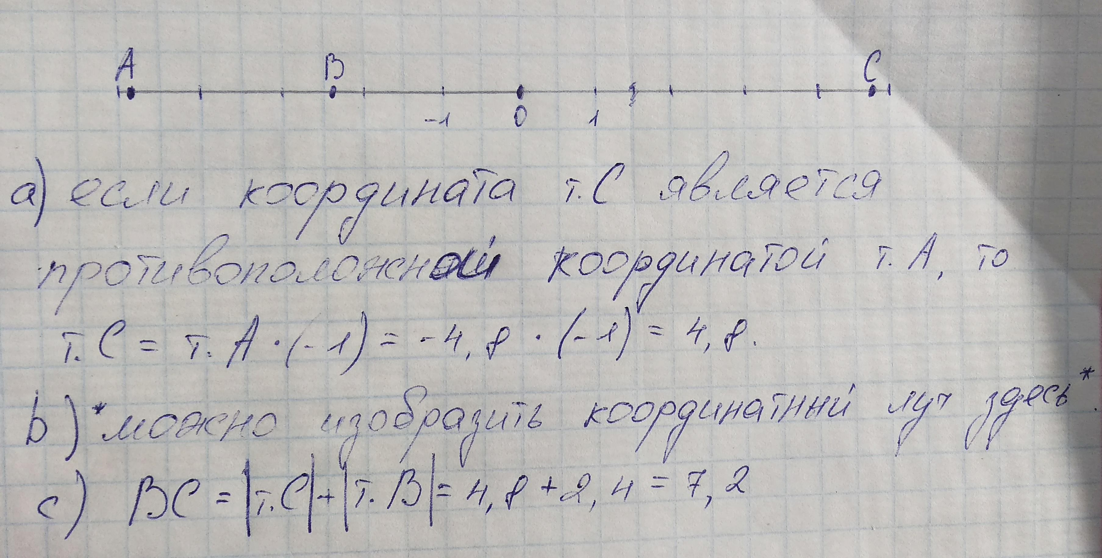 а) Если координата т. С является противоположным значением координаты т. А, то т. С = А * (-1) = 4.8