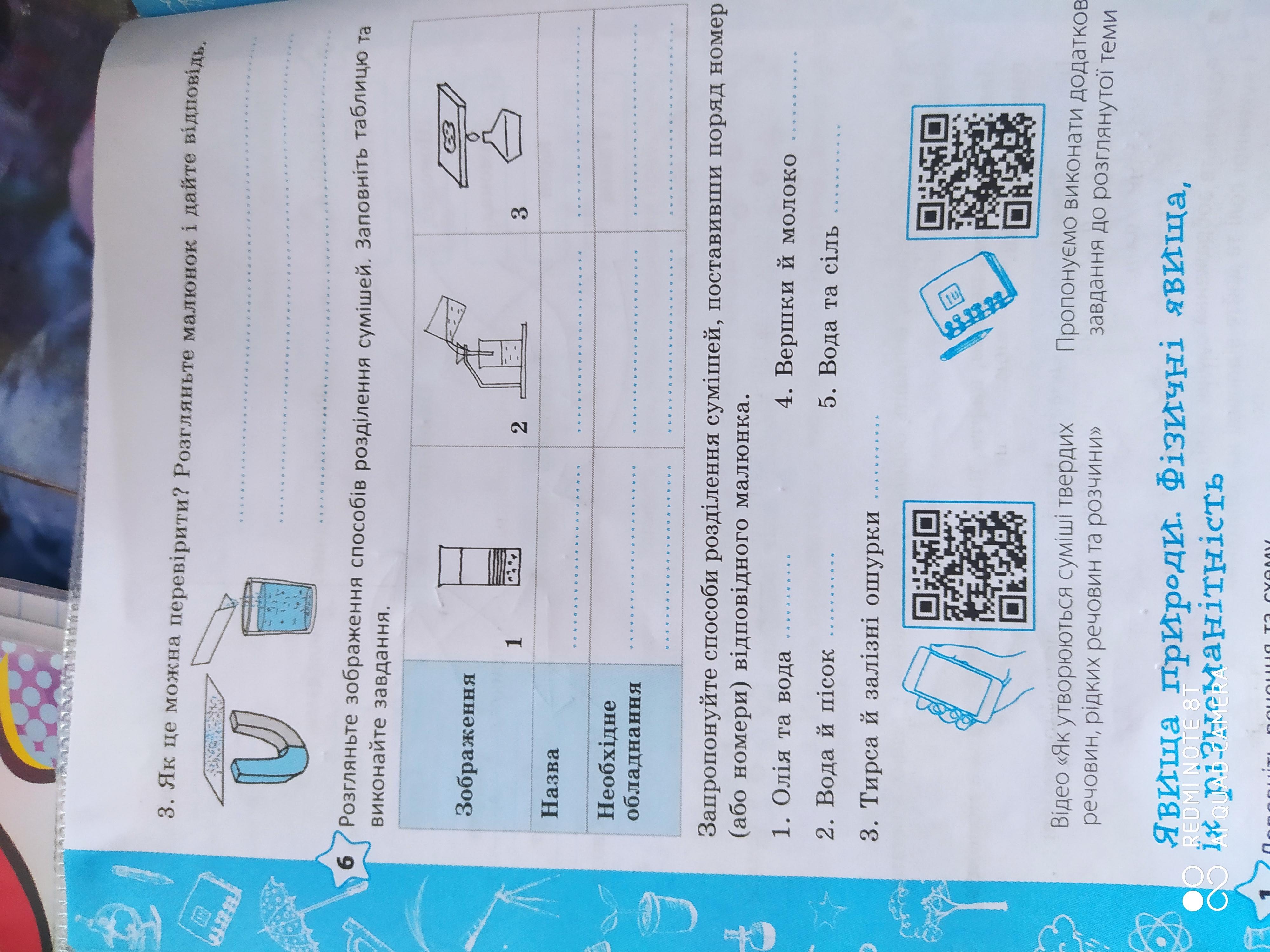 2)пісок,вода,мірний стакан,колба,воронка,папір,підставка и т.д.