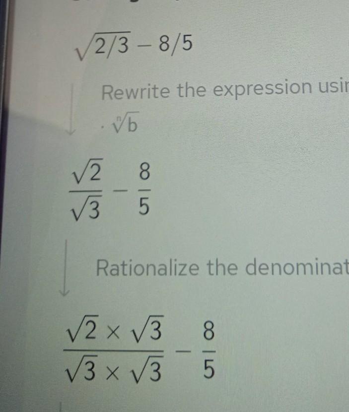 1) √⅔ - 8/5 = ——— - ——— = ——— - ———