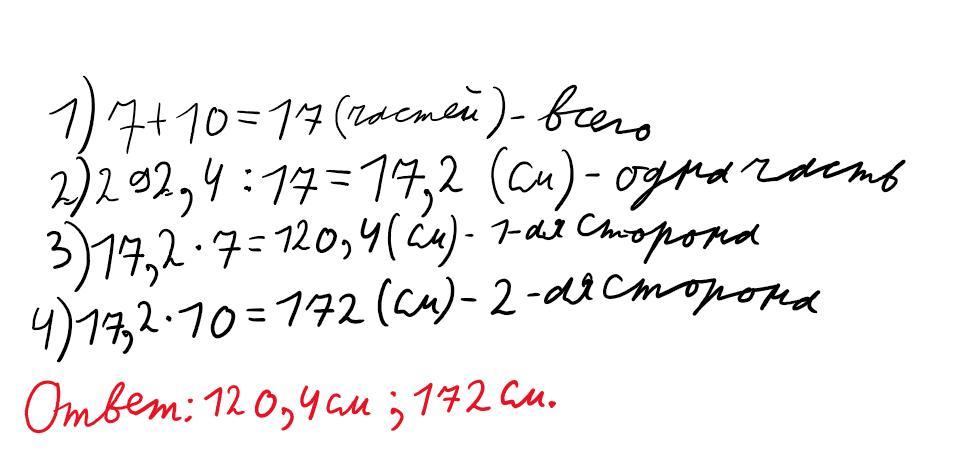 стороны параллелограмма соотносятся как 7 10 а периметр равен 292,4 см. Вычислите стороны параллелограмма