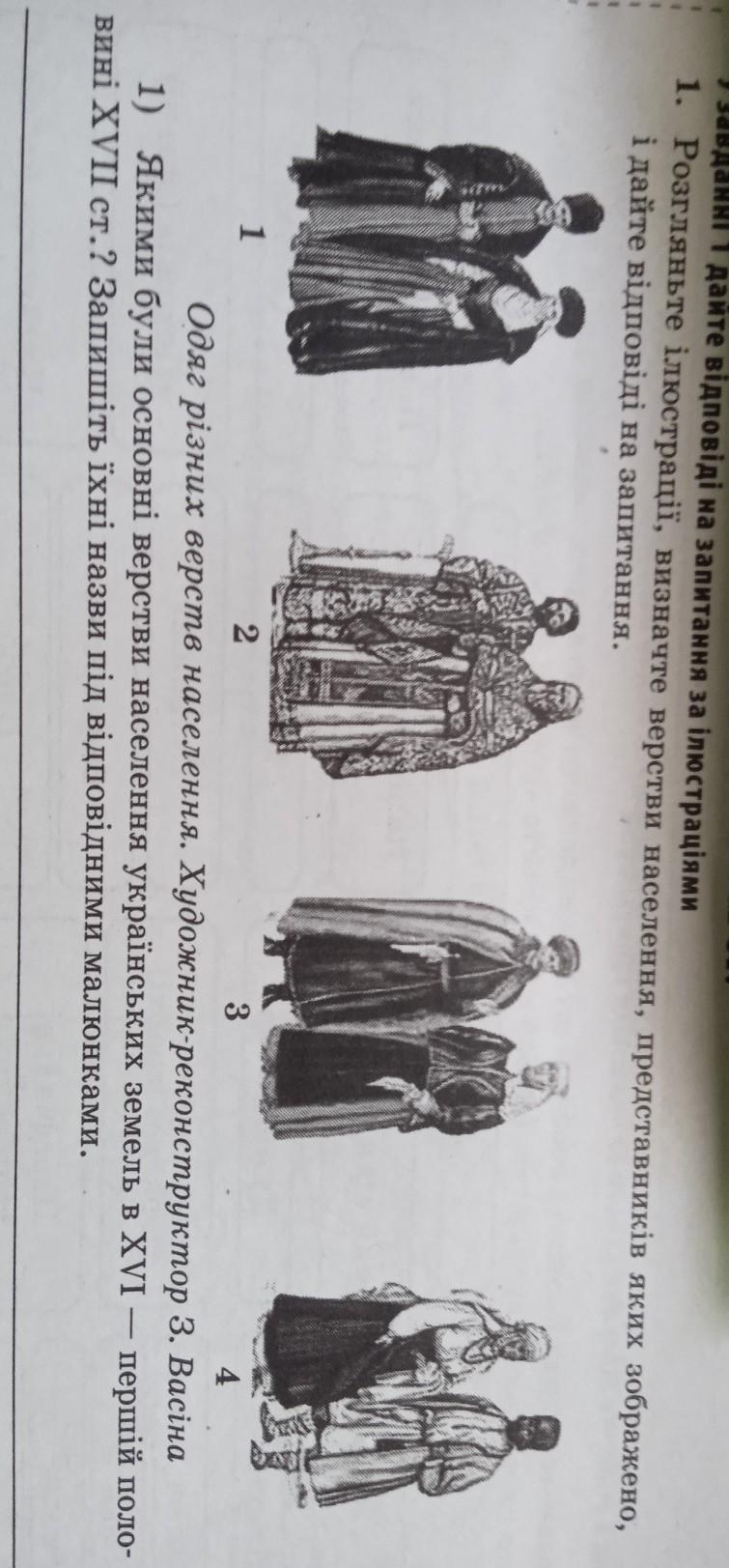 Якими були основні верстви населення українських земель в ХVI-першій половині XVII ст.? Запишіть назви під відповідними малюнками.