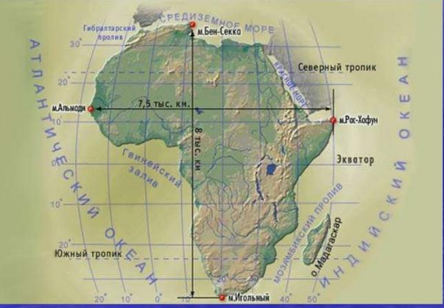 Ответ: протяженность материка в градусах и километрах с севера на юг 72° или 7992 км и с запада на восток 70° или 7672 км.