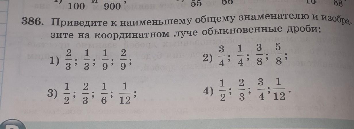 приведите к наименьшему общему знаменателю и Изобразите на координатном луче обыкновенные дроби.помогите пжжжж