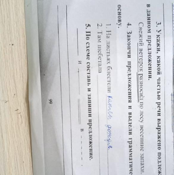 на листьях дополнение блестели сказуемое капли подлежащее дождя дополнение
