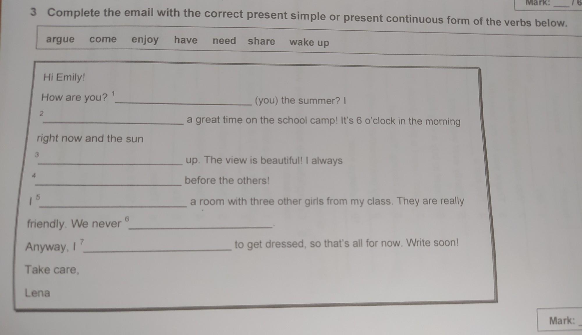 3 Complete the email with the correct present simple or present continuous form of the verbs below.