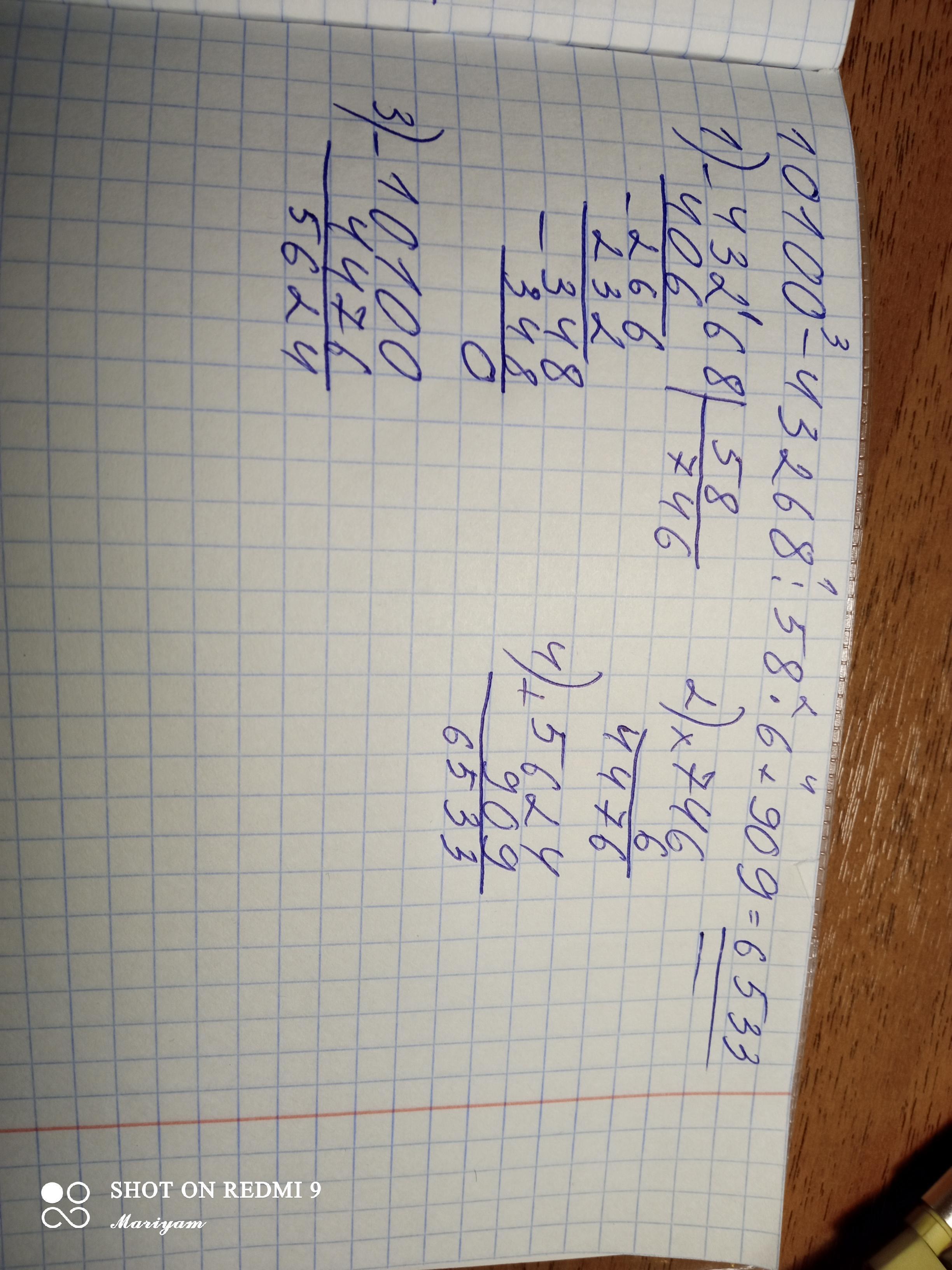 10 100 - 43 268:58*6+909