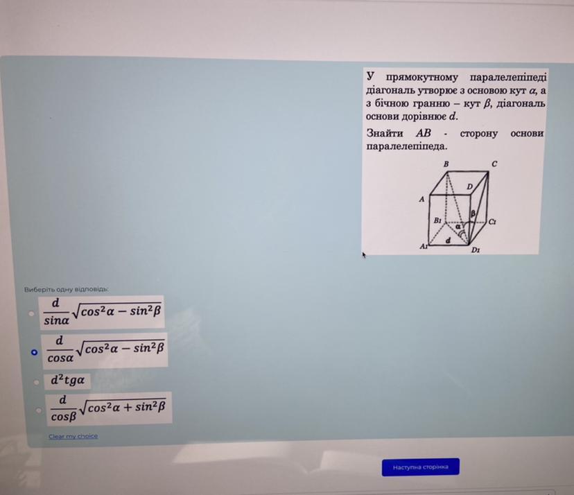 кут В, діагональ основи