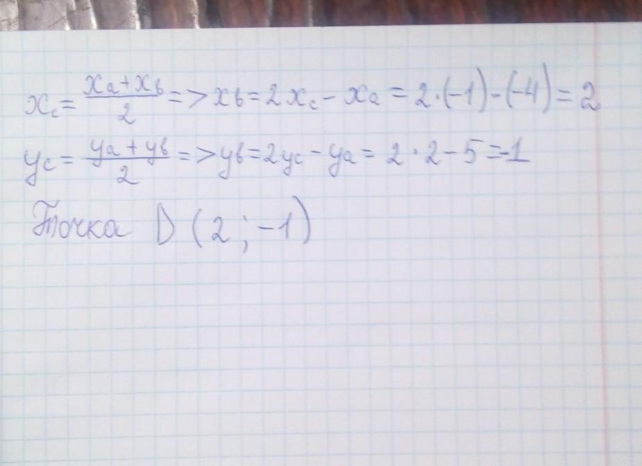Объяснение: чтобы найти координаты второго конца, надо от удвоенных координат середины отнять координаты первого конца,