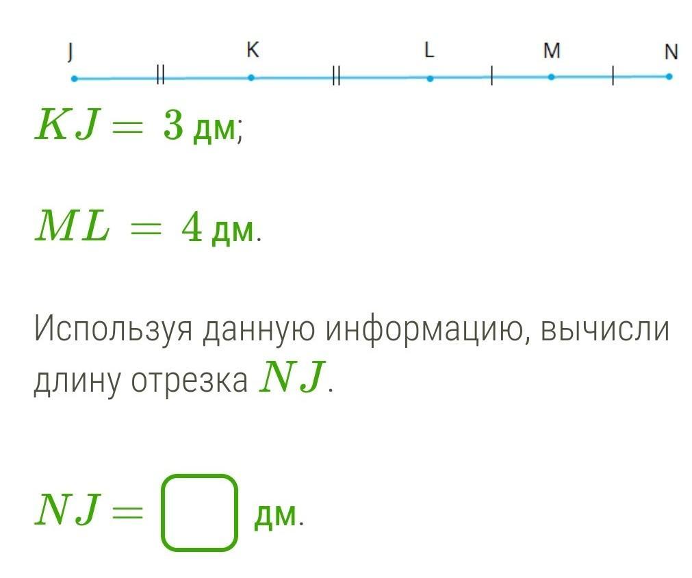 короче сначала складываем два равных отрезка по 3 дм(JK u KL):3+3=6дм
