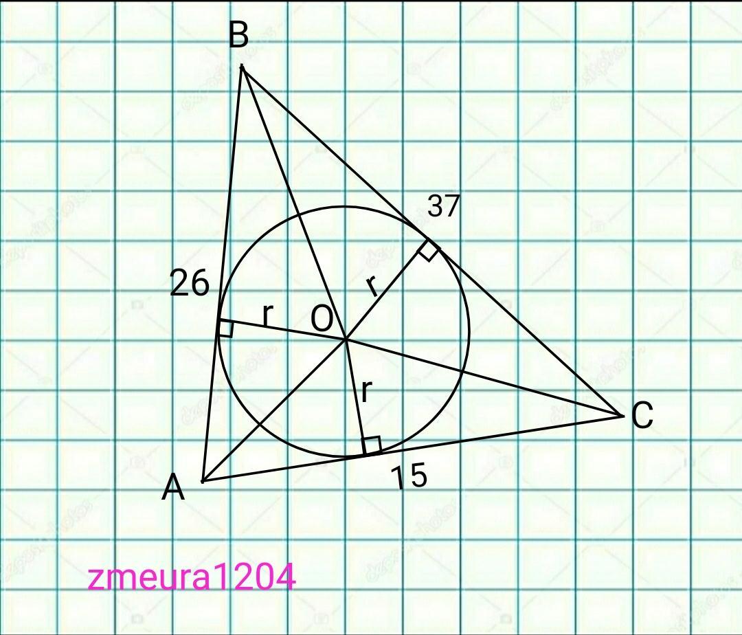 Найдите радиус, это будет высота каждого из трёх треугольников, с основаниями 26;15;37.