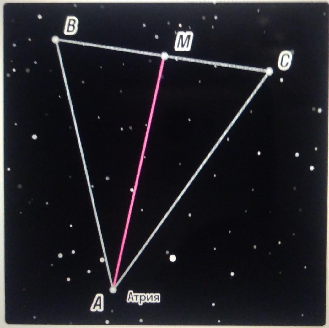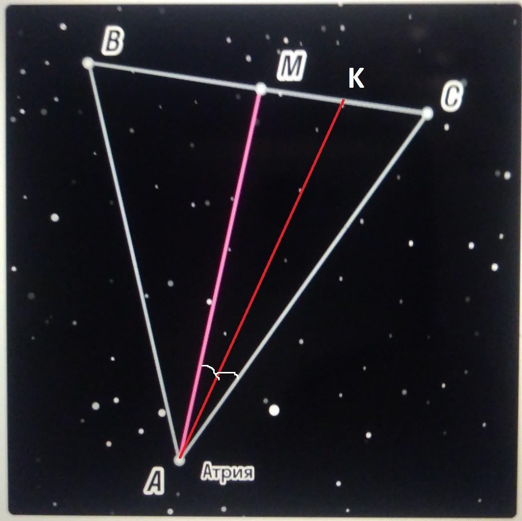 Вампиры в небе обнаружили созвездие в форме треугольника ABC. Они его очень внимательно рассматривали, так как звёзды могут поведать самые скрытые тайны подземного мира. Проходя мимо НИХ И засмотревшись на созвездие, ты замечаешь, что <A = 80°, AM — биссектриса угла ВАС, а АК — биссектриса угла MAC. Найди <KAC. , чтобы войти в доверие к вампирам.