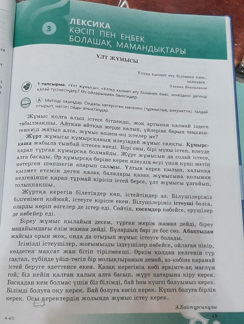 А Мәтінді оқыңдар. Ондағы көтерілген мәселені (тұрмыстық, әлеуметтік) талдай отырып, негізгі ойды анықтаңдар.