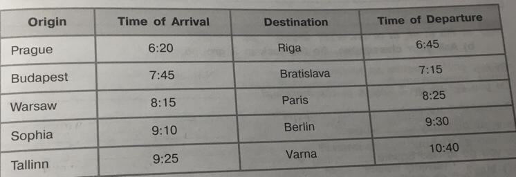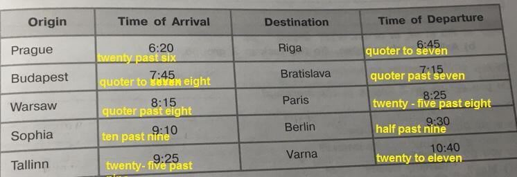 What time does the train from Prague arrive? – It arrives at twenty past six.