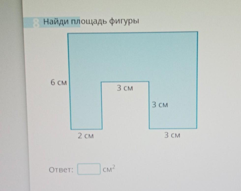 Площадь фигуры с вычетом белого квадрата (т.к. смежные стороны равны по 3 см,то это квадрат):