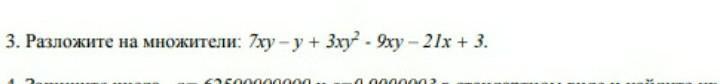 7ху-у+3ху²-9ху-21х+3 = у(7х-1+3ху)-3(3ху+7х-1) = у(3ху+7х-1)-3(3ху+7х-1) = (у-3)(3ху+7х-1)