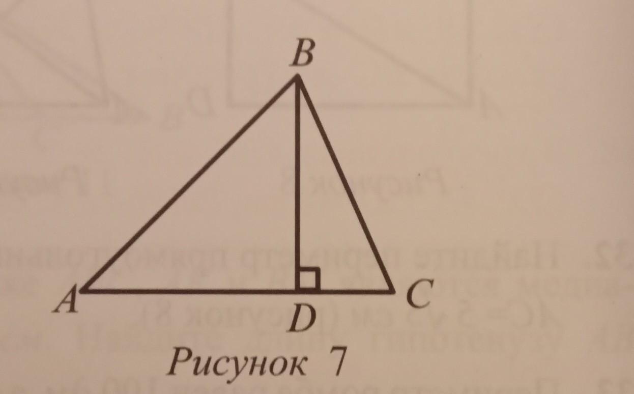 30. В треугольнике ABC, BDLAC, AB=15 см, BD=12 см, АС=14 см. Найдите сторону ВС (рисунок 7).