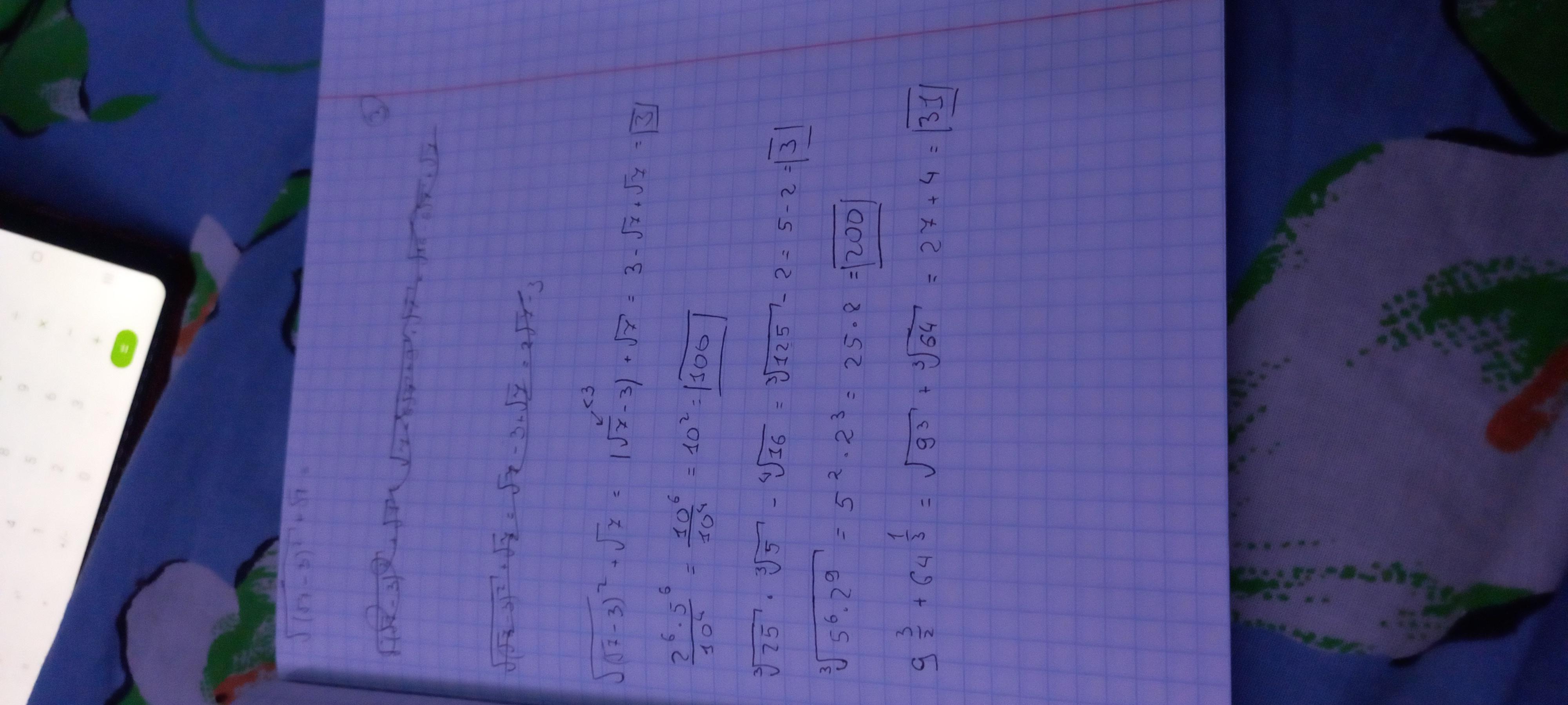 √(√7-3)^2 + √7=3-√7+√7=3(т.к значение √7-3 это отрицательное мы переворачиваем его в полоэитиельное из-за квадрата)