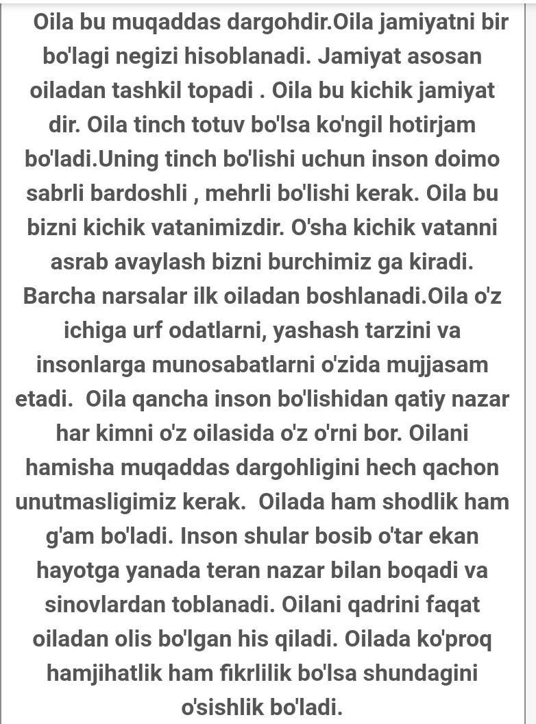 mana shu oila haqida matn hohlasez biroz ozgartirib ozizi oilangizga moslashtiring