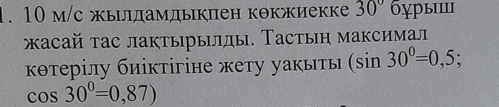 11. Камень брошен под углом 30 ° к горизонту со скоростью 10 м / с. Время достижения максимальной высоты скалы (sin 30º = 0,5; cos 30º = 0,87) A