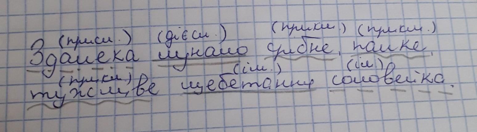 Зробіть синтаксичний розбір речення ( підкресліть головні й другорядні члени речення, визначте частини мови, охарактеризуйте речення.) ( 2,5 б.) Здалека лунало срібне, палке, тужливе щебетання соловейка.