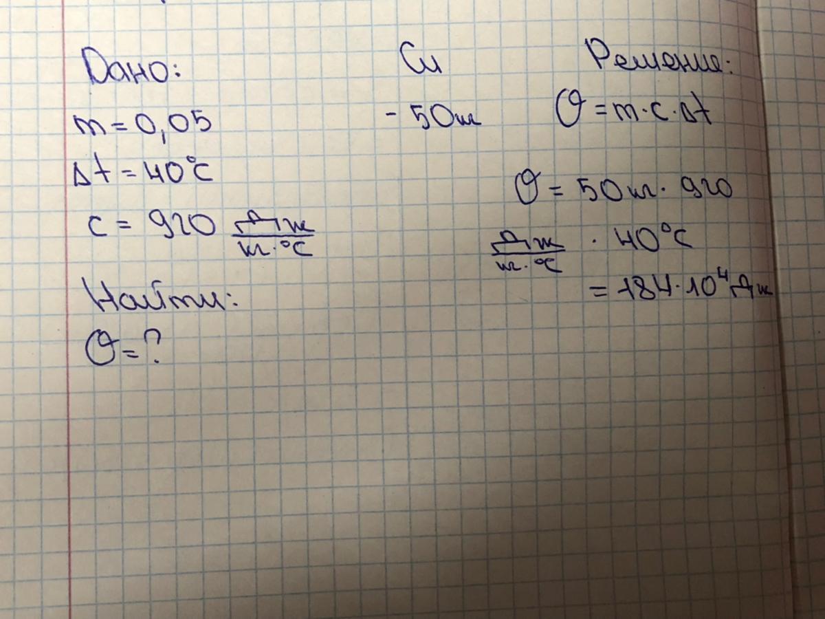 Сколько тепла понадобится что бы нагреть 0,05 тонн тело сделанное из алюминия на 40°С ? теплоемкость алюминия 920 Дж/кг °С