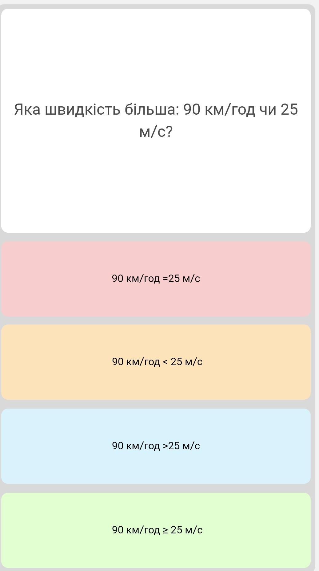 90 км/год < 25 м/с