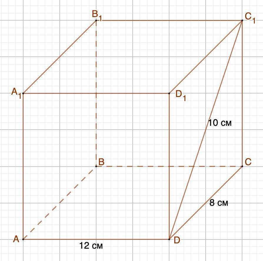 АВ =CD = 8 см; AD = BC = 12 см; DC₁ = 10 см