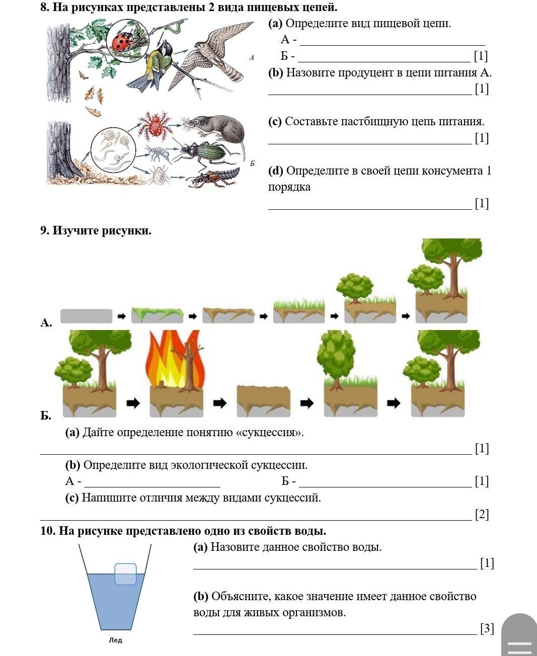 (b) Назовите продуцент в цепи питания A. _________________________________ (с) Составьте пастбищную цепь питания. _________________________________ (d) Определите в своей цепи консумента 1 порядка _________________________________