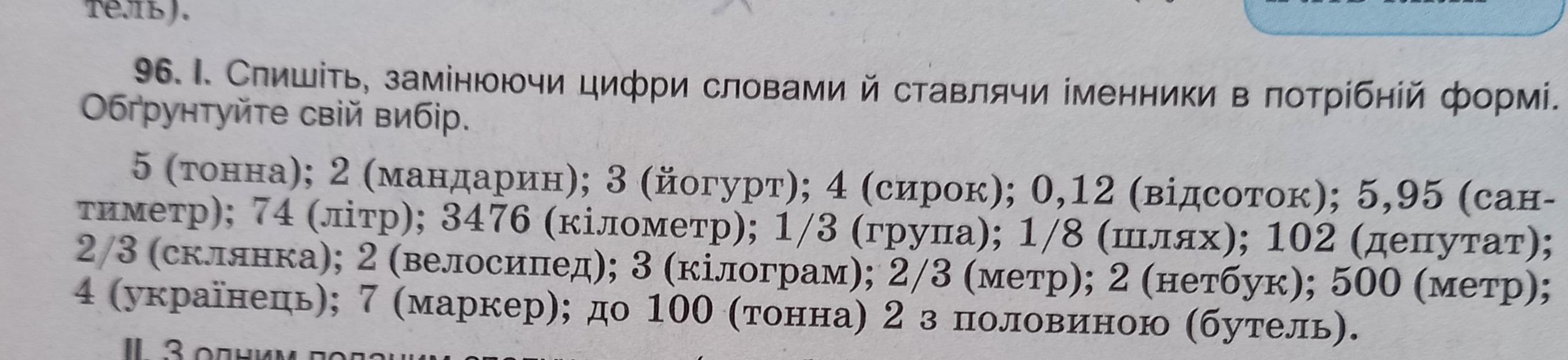 – сімдесят чотири літри, три тисячі сімдесят шість кілометрів, сто тринадцять груп, сто два депутати ⇒ при складених числівниках іменники вживаються у тому відмінку, якого вимагає останній компонент числівника