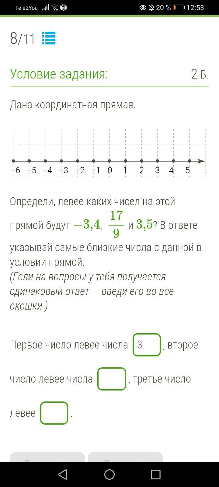 Первое число левее -3, второе число левее 2, третье число левее 4