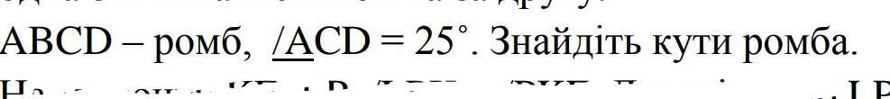 AC- діагональ, а за вл-тю ромба вона ділить кут навпіл, отже кут С=25*2=50