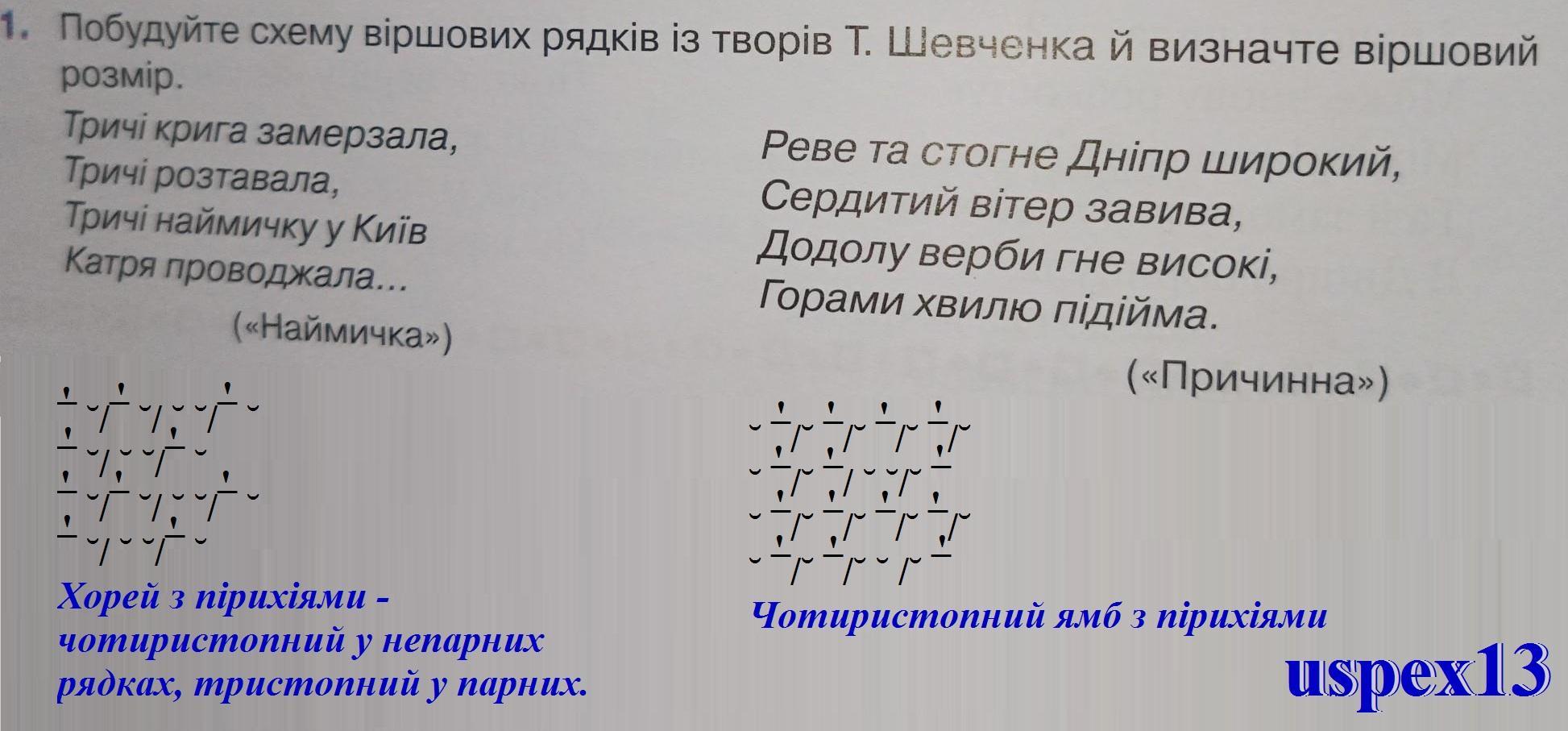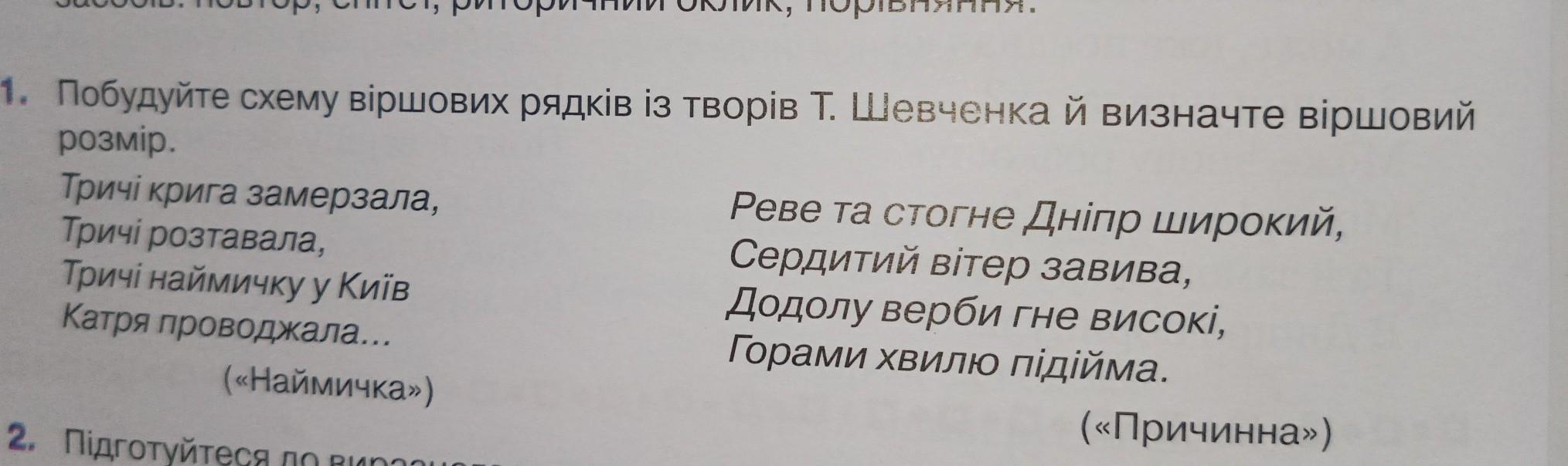 наприклад, в "Реве та стогне.." їх 4 - таких стопів 4, тому це чотиристопний ямб . А "Наймичка" - написана віршованим розміром чотиристопний хорей.