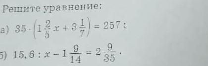 3. Решите уравнение: a) 35(1 2/5 * x + 3 1/7) = 257 ; б) 15, 6 / x - 1 9/14 = 2 9/35