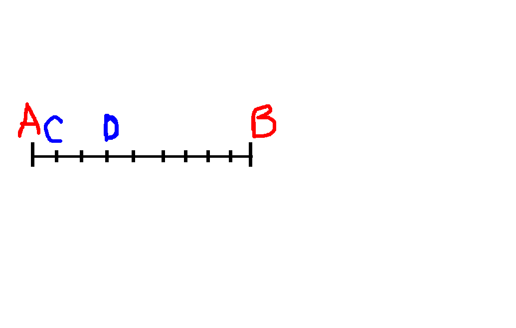 Поставь на нём точки C и D так, чтобы отрезок AC был в 2 раза короче отрезка CD, а отрезок DB — в 3 раза