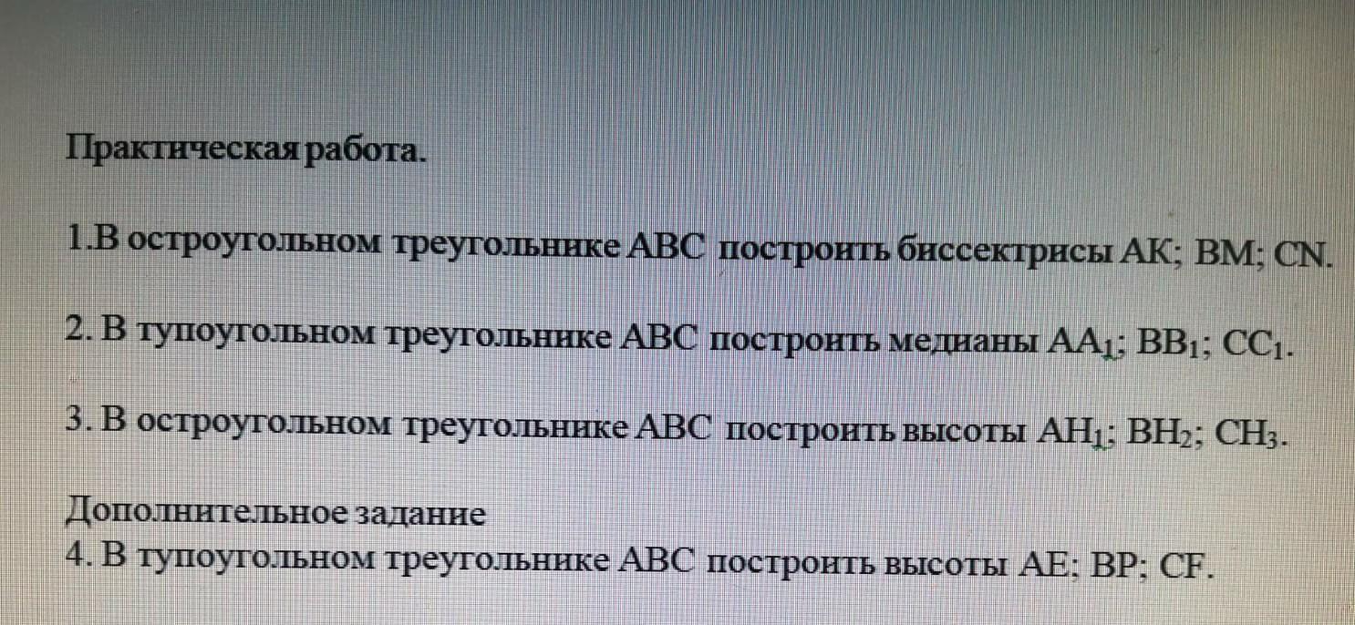 К каждому построению выписать определение медианы, высоты или биссектрисы.