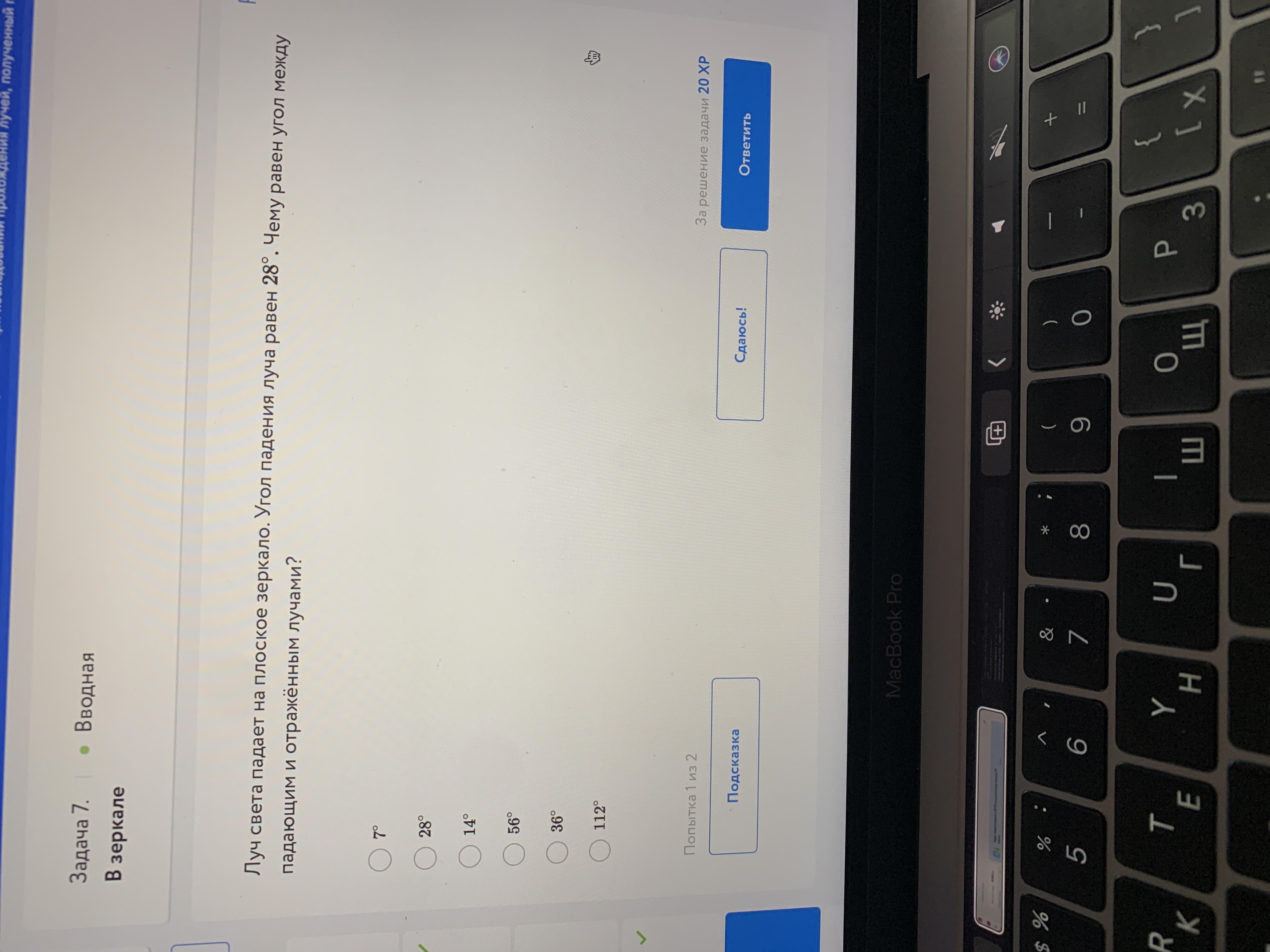Угол падения равен углу отражения