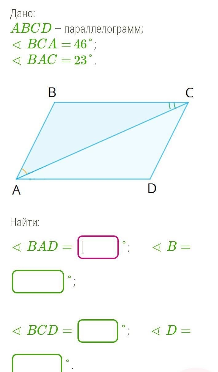 угол ВСА = 46°, угол САD= углу ВАС = 23°