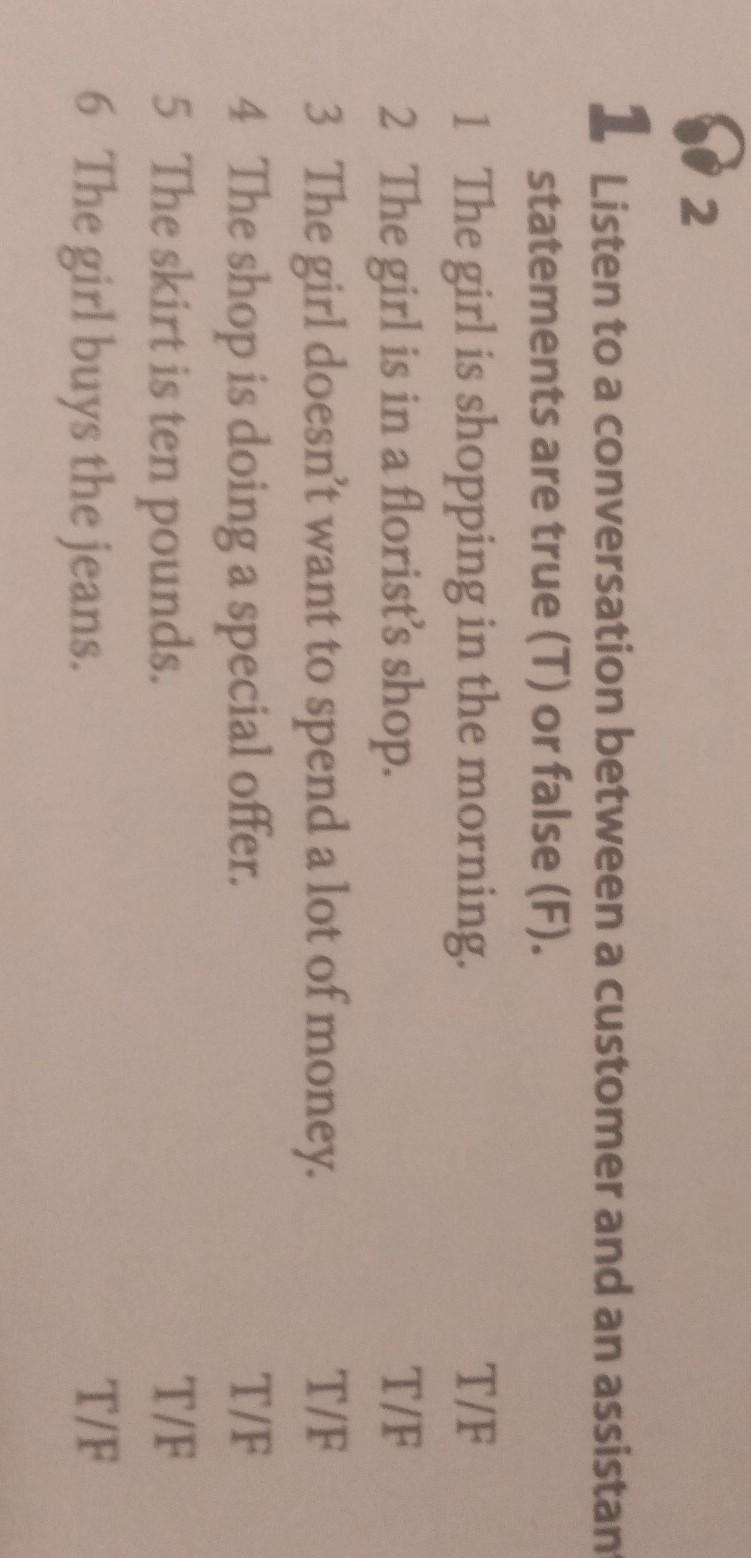 Listen to a conversation between a customer and an assistant and decide if these statements are tru (T) or false (F)