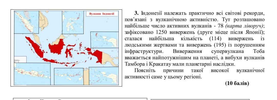 Причина: як відомо, більша частина Індонезії лежить в Китайській плиті. І так, ви можете це перевірити подивитися на мал.1. Все просто, ці плити (Євразійська та Китайська) сходяться з дуже великою силою та часом, і утворюються вулкани, землетруси, тощо.