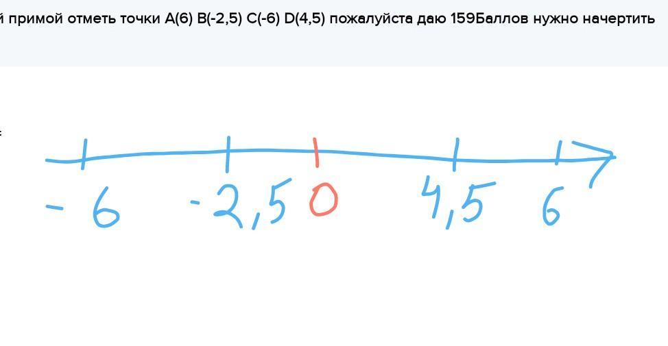 на кординатной примой отметь точки А(6) В(-2,5) С(-6) D(4,5) пожалуйста даю 159Баллов нужно начертить срочно