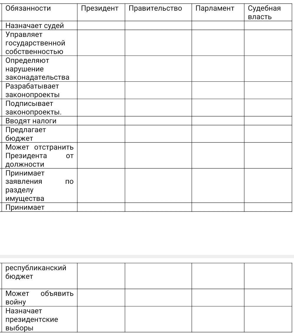 Определите полномочия исполнительной, законодательной и судебной властей в политической системе Республики Казахстан.