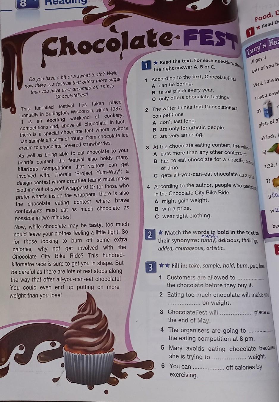 Во втором вопросе, нужно к выделенным словам, из текста, найти синонимы, которые написаны в самом задании.