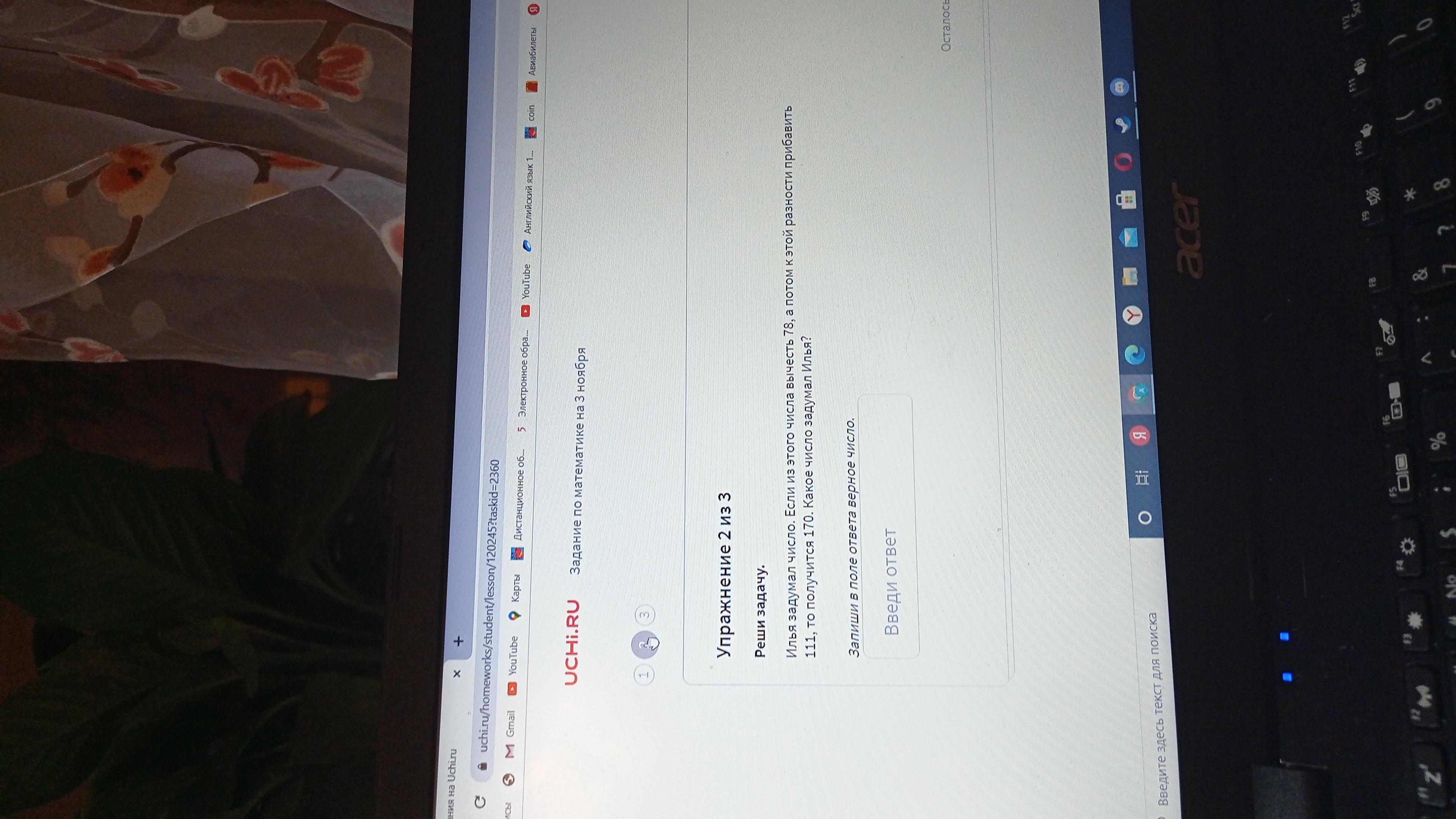2) Пусть x - загаданное число, тогда x-78+111=170 x=137