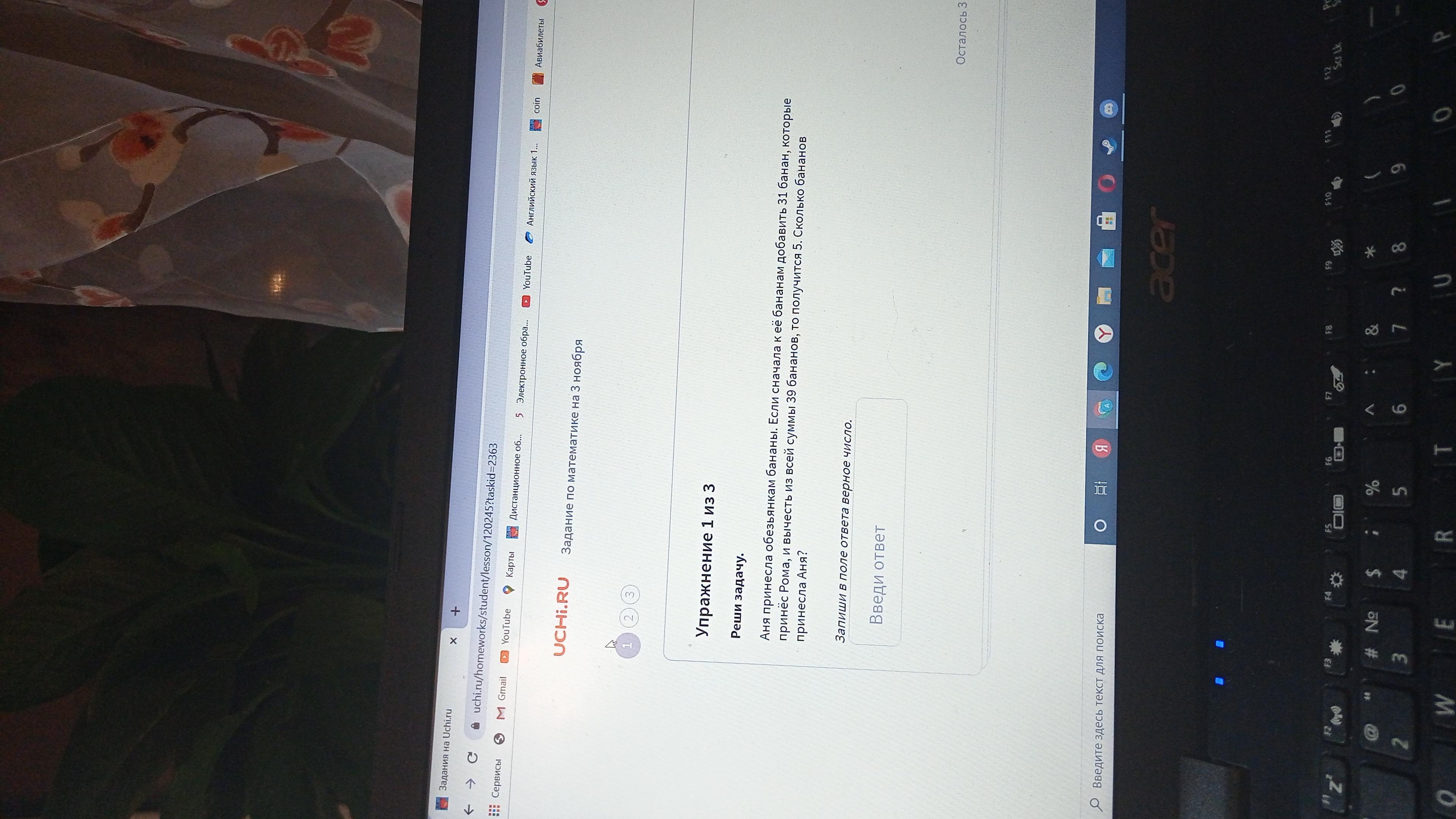1) Пусть x - кол-во бананов, тогда x+31-39=5 x=13
