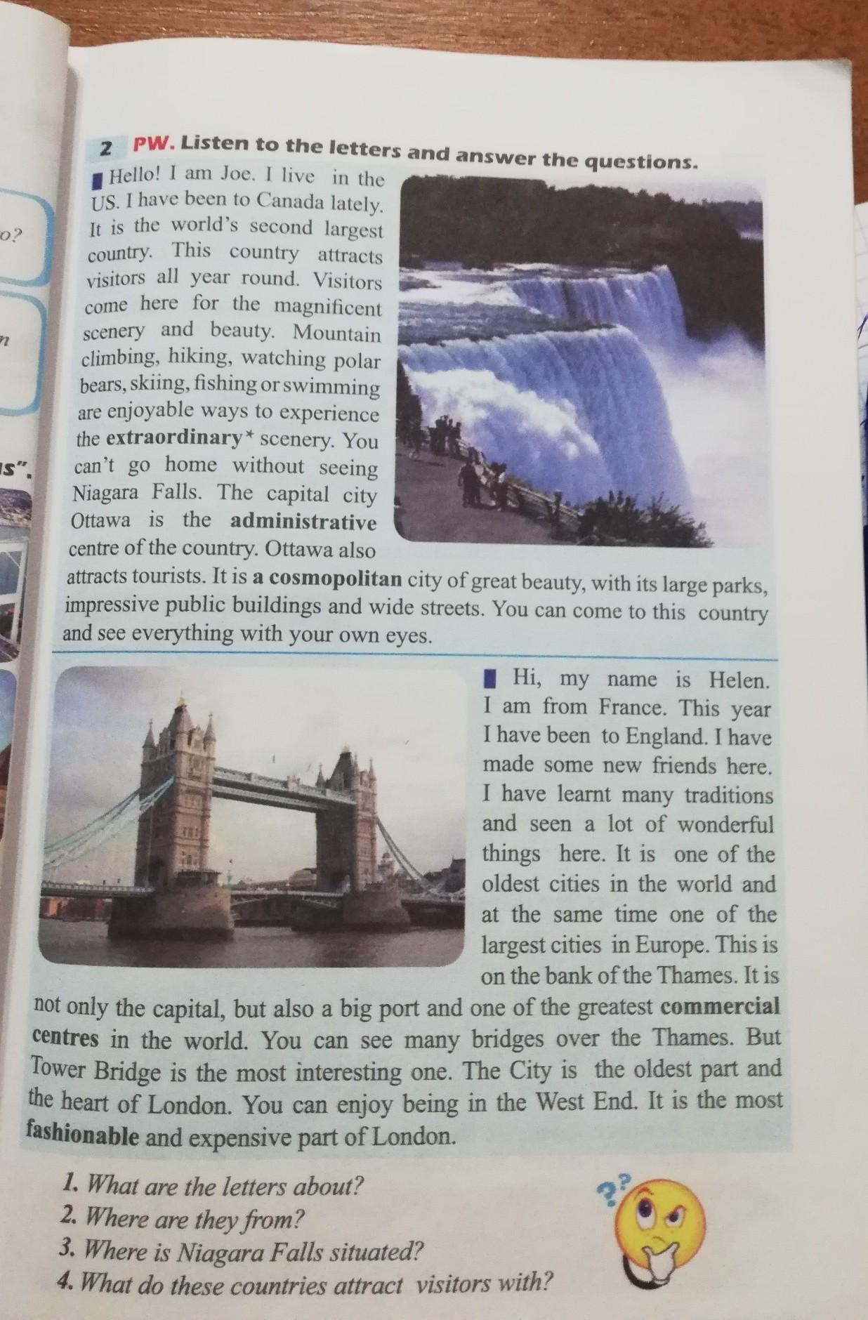 1. What are the letters about? 2. Where are they from? 3. Where is Niagara Falls situated? 4. What do these countries attract visitors with? Помогите пожалуйста текст наверху ❤️ даю 50 баллов