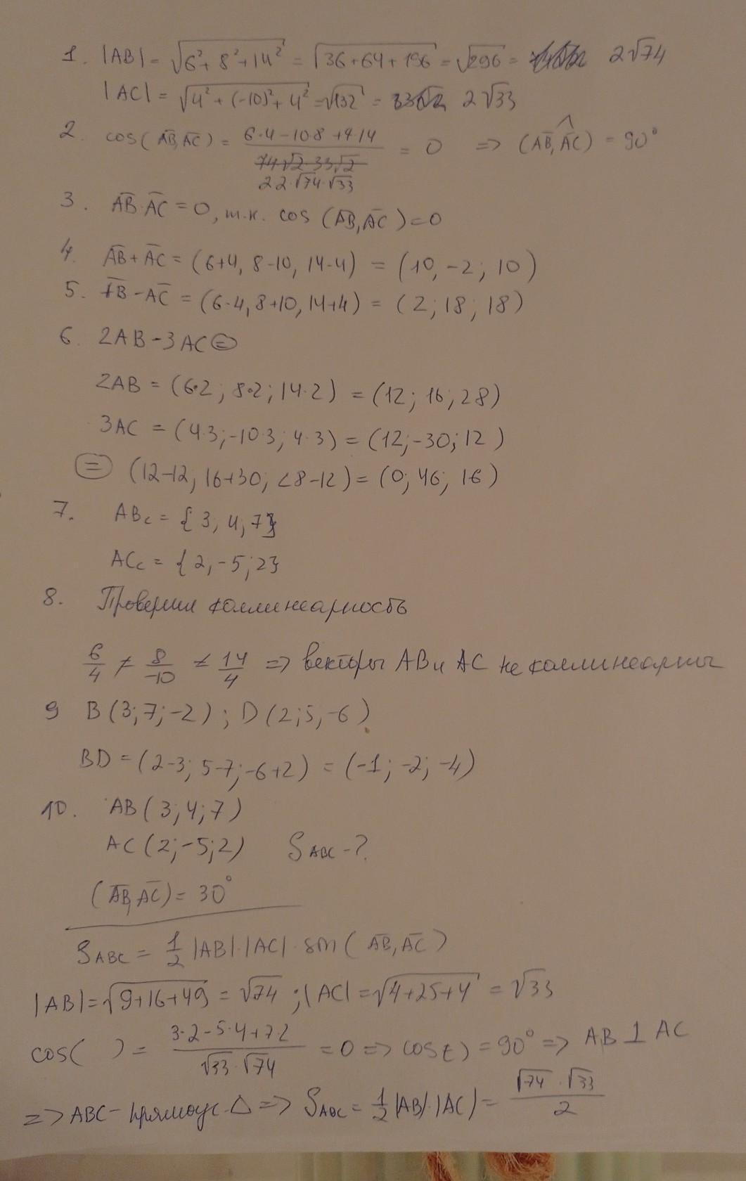 3 . АВ*AC = 6 * 4 + 8 * (- 10 ) + 14 * 4 = 24 - 80 + 56 = 0 ; АВ*AC = 0 .